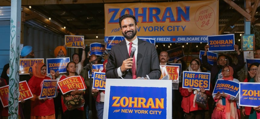 As New York’s current Democratic governor, first appointed by New York’s previous Democratic governor, ran out of time last night, the tannoy announcement was pre-empted by the socialists in the bleachers.