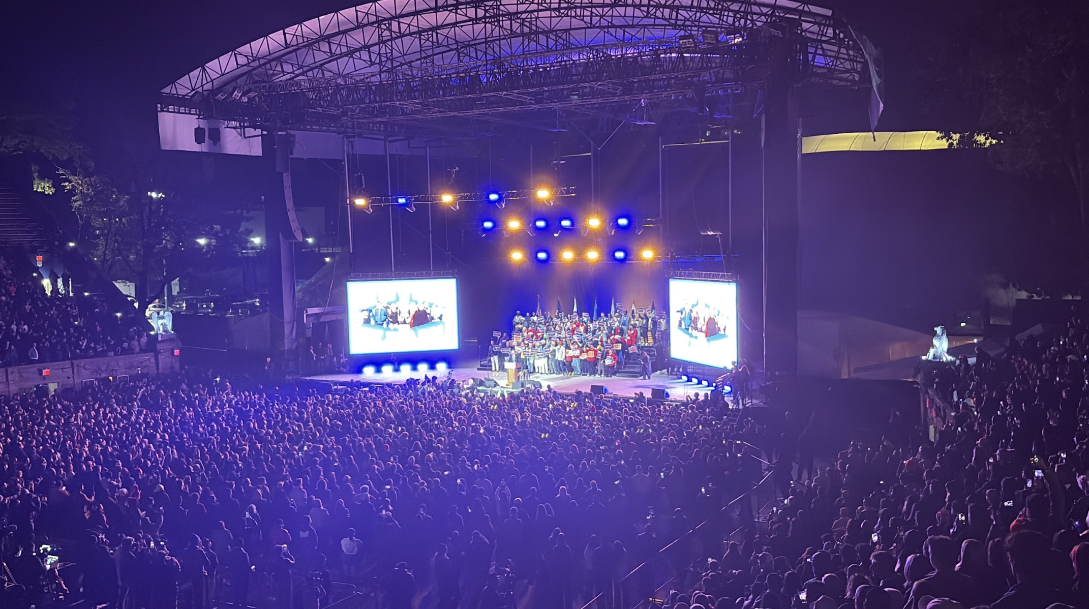 This was the final rally ahead of New York City’s mayoral election on 4 November in front of a crowd of approximately 15,000 people stuffed into Forest Hills stadium in Queens.