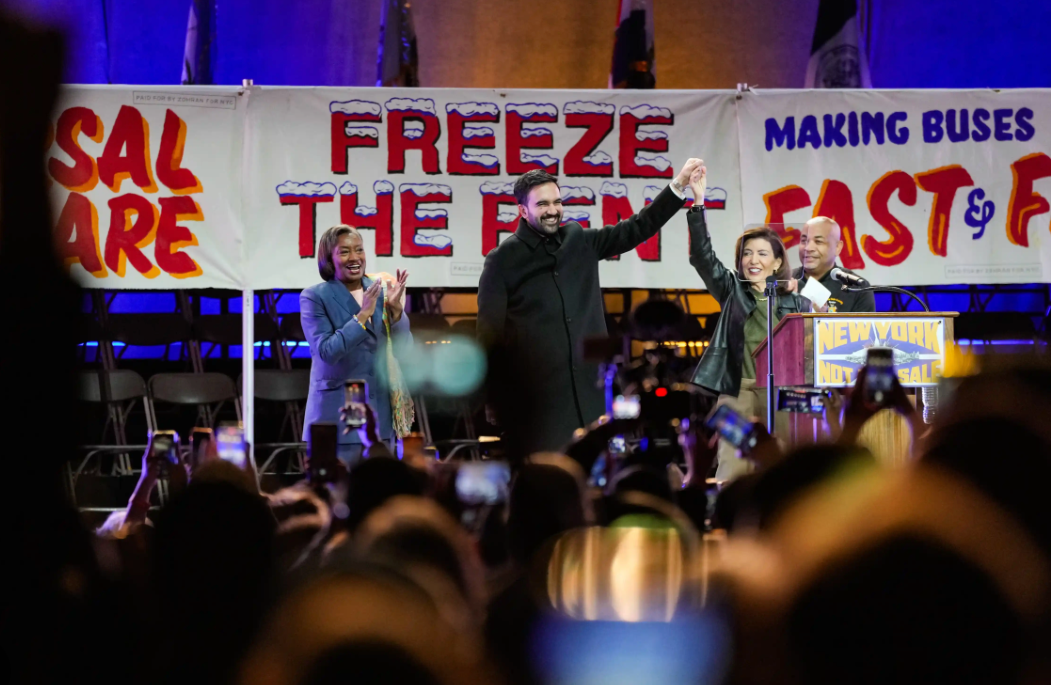 An emergency room doctor wells up on stage talking about his patients who will die early because of the structural forces outside the hospital walls: “Part and parcel of electing Zohran is to build a city we can all afford to live in.”