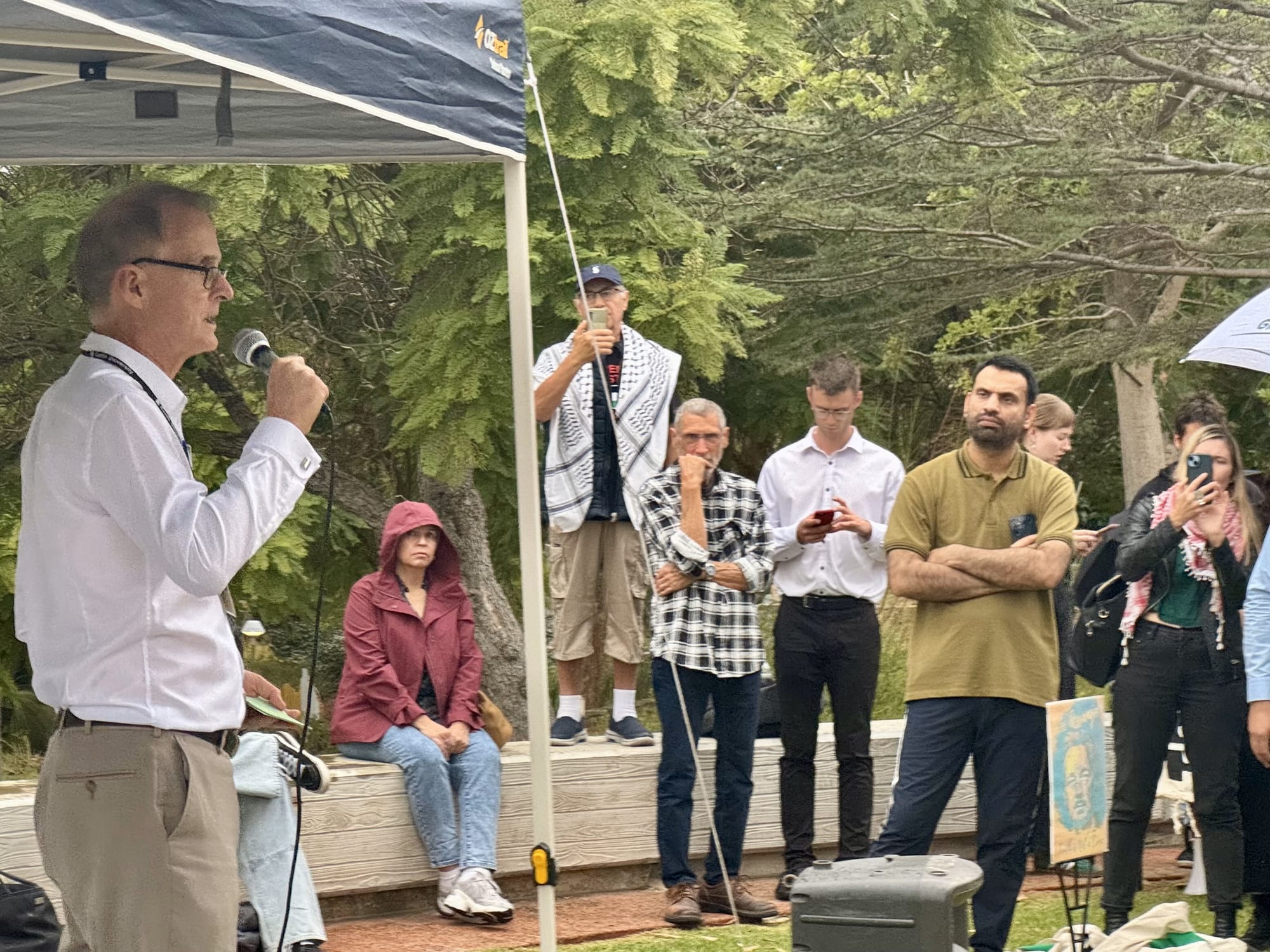 Curtin professor Adrian Baddeley told the rally that many Curtin staff were "deeply distressed by the genocide in Gaza" and supportive of student protesters.