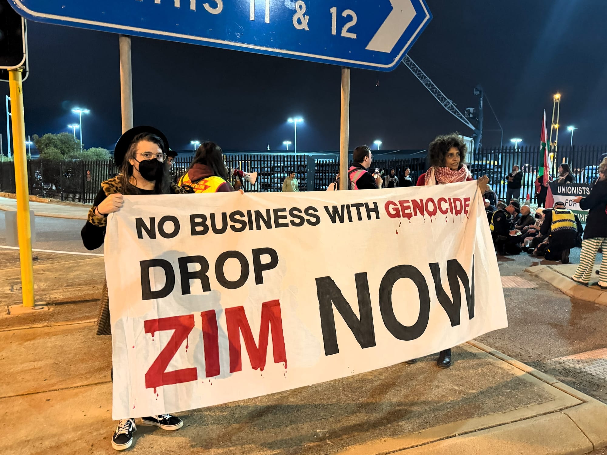 ZIM has used its infrastructure to aid Israel's military attacks on Palestinian people in Gaza. Unionists for Palestine organiser Sam Wainwright told protesters the goal of the picket was to cause financial damage to ZIM and its subcontractors.