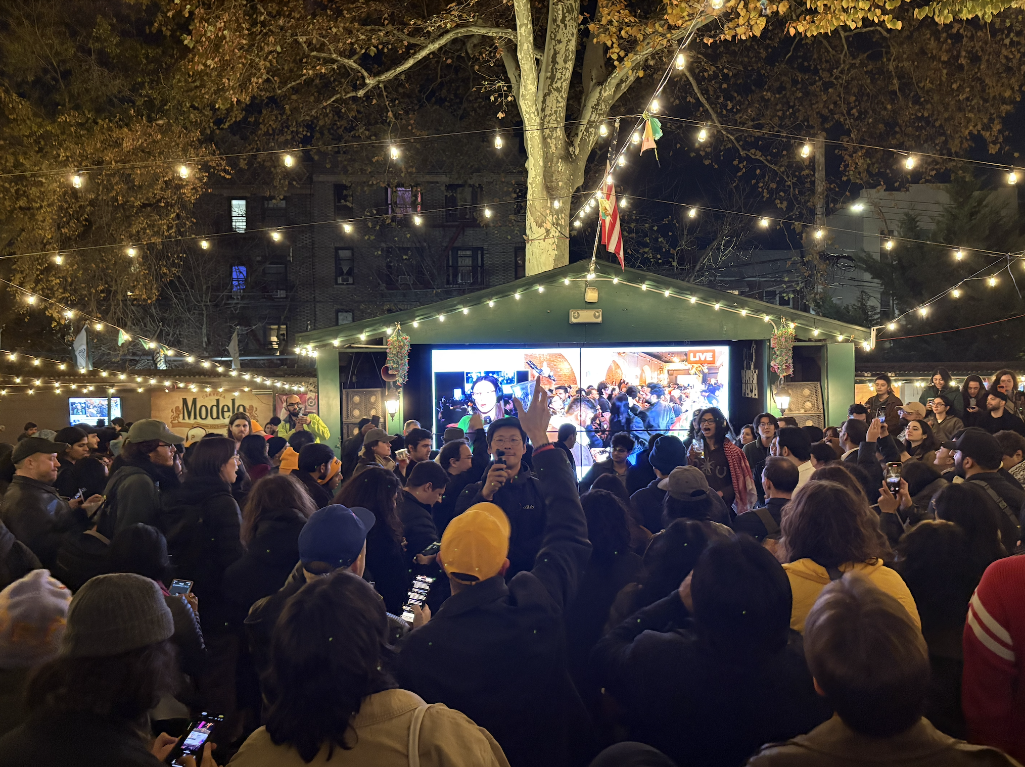 Sliwa is in tears on stage at an Italian restaurant on the Upper West Side as he repeats his vow to stay and fight to keep New Yorkers safe (Mamdani says that Sliwa was the only candidate to call to congratulate him). Trump’s reaction starts flashing up on screen and the crowd of thousands in the massive beer garden are really getting into it now. “And so it begins,” posts the President, who must be unaccustomed to having his own star outshone this brightly.